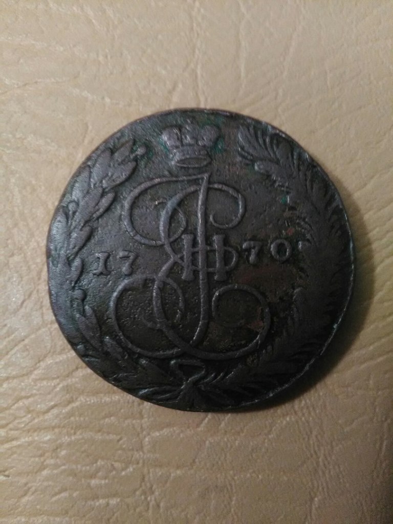 Добрый вечер! Ребят, помогите по оценки монеты, 5 копеек 1770, а орёл, по-моему, - перепутка образца 1763 года. Вроде как редкая монета подскажите, пожалуйста.
