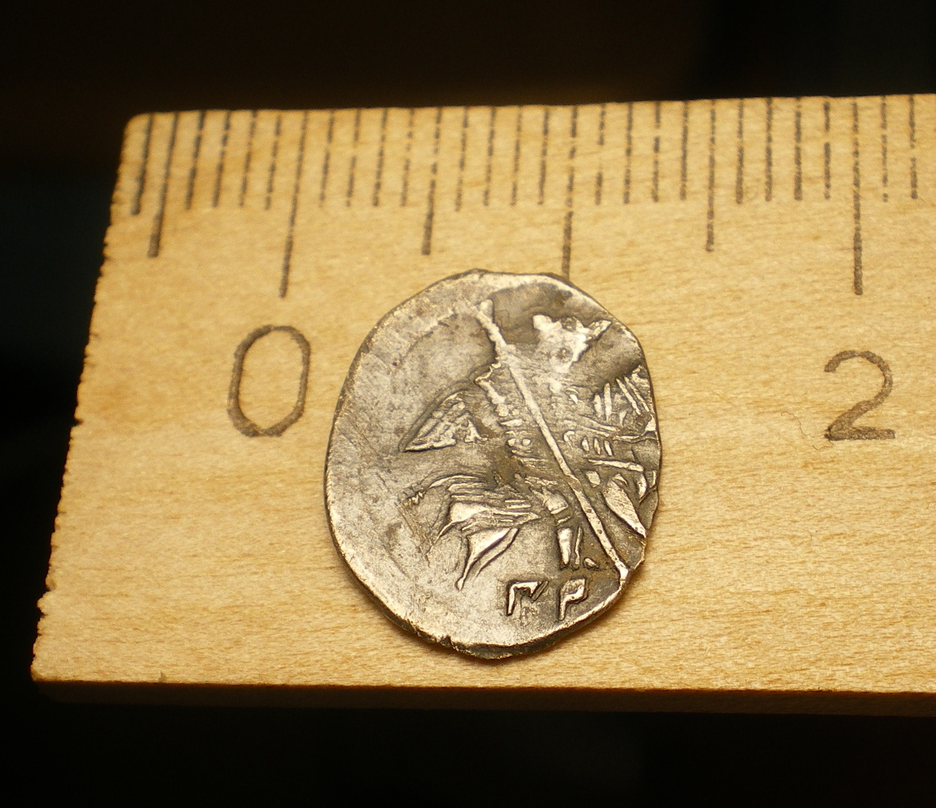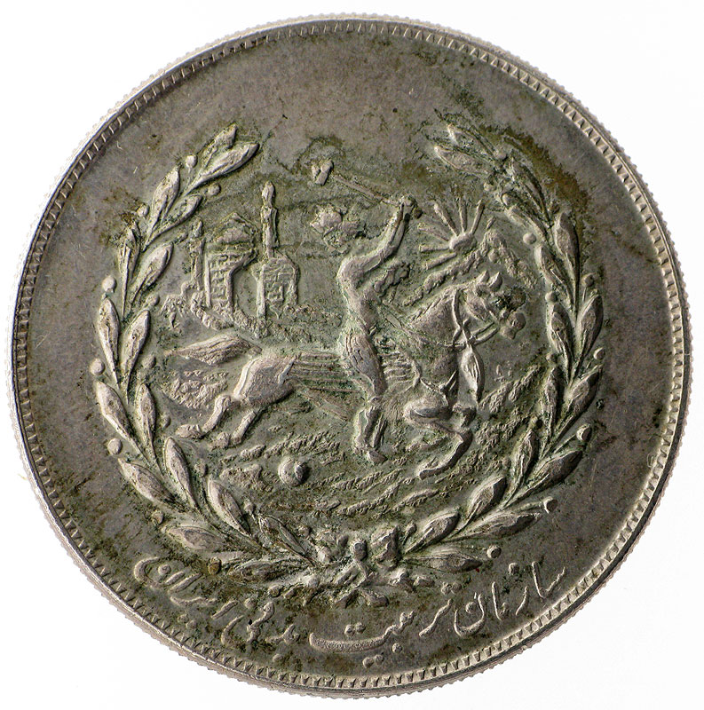 Честно говоря, странная штуковина... У шаха герб - в основном, лев, или корона... Ну там ещё пара разновидностей... А здесь - игрок в поло... Судя по качеству изображения, монетка должна быть мелкая... Может, жетон какой?