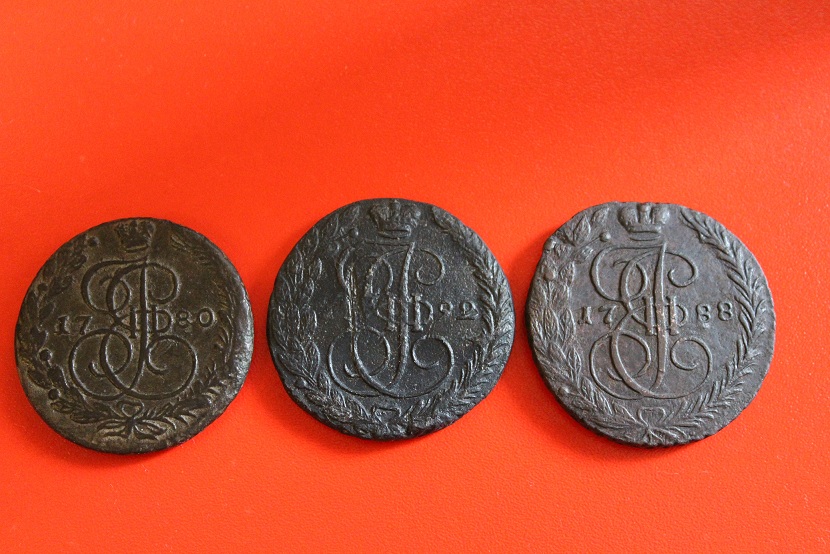 Здравствуйте! Оцените,пожалуйста, 2 копейки 1758 года перечекан, гурт Екатеринбург.