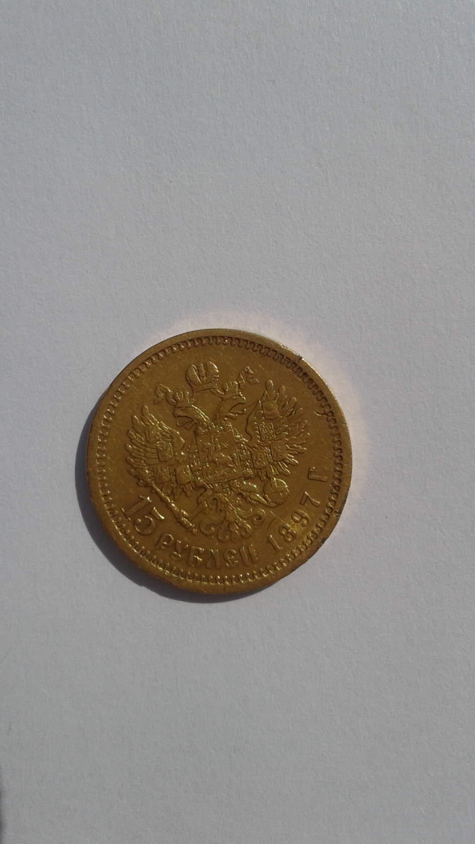 Прошу помощи в оценке "империала" 15 рублей 1897 года 900 проба золото.