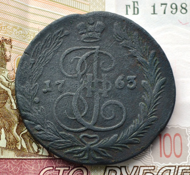 Доброго вечера! 5 копеек 1763 года, оцените для продажи, пожалуйста. Заранее благодарен.