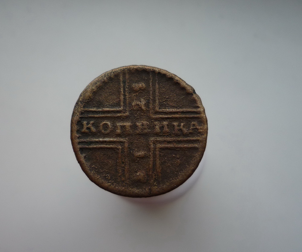 Подскажите, пожалуйста, по стоимости копейки 1715 года. Не очень качественное фото, монета не чищена, на яву выглядит лучше.