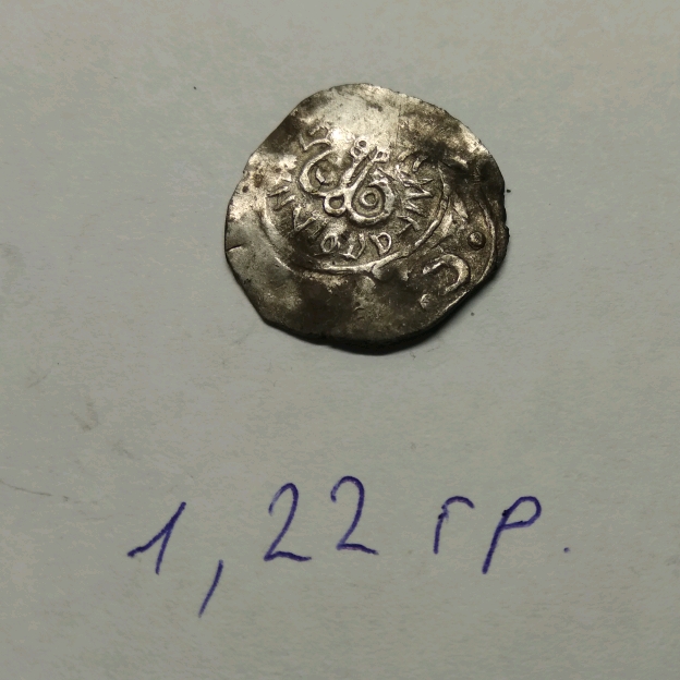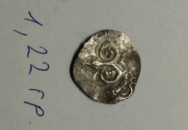 Двусторонний надчекан "рязанского" типа, упорно именующийся в нумизматической среде монетой Пронского княжества. По цене 12-15 тр.