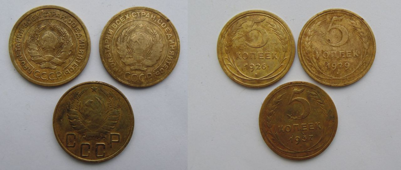Две монеты с одного поля. Помыты щеткой с мылом. 1) Прошу помочь с оценкой каждой. 2) У пятака я правильно рассмотрел широкое лезвие серпа? И нужно ли его очищать до металла, а затем патинировать, если на продажу? ![]() ![]() ![]() -------------------- Душа, на распашку!