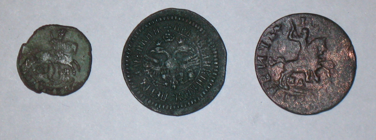 Деньга 1713 года, в зависимости что там на оборотной стороне стоит от 1000 рублей.