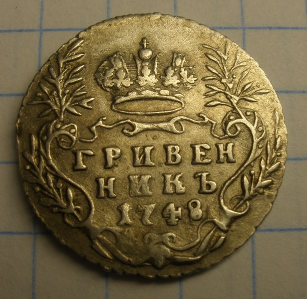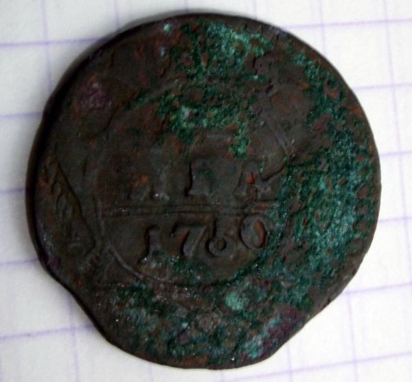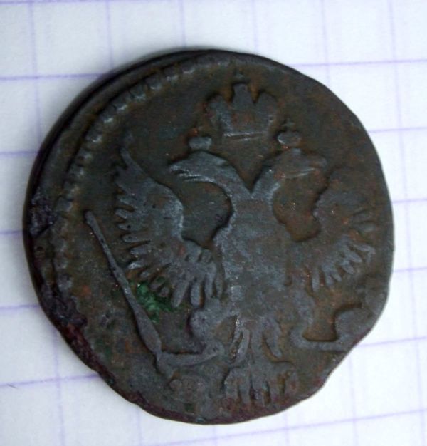 смотрите Конрос там указано что в 1750 году деньга шла с 2 типами орлов: с орлом старого и нового типов. У Вас с орлом старого типа. Различия в цене вроде нет.