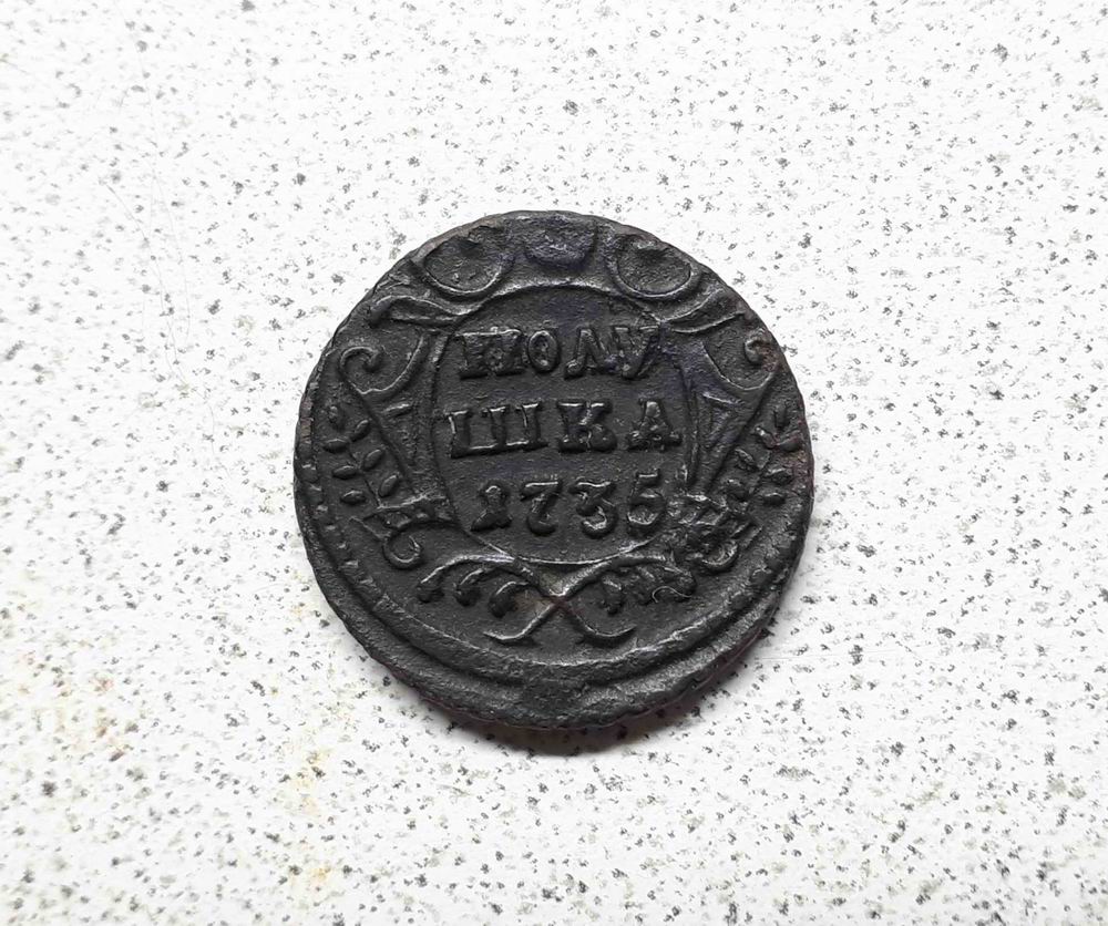 Просьба оценить монету Полушка 1735 года. Обратите внимание на сохран песочный. Вложенные эскизы изображений -------------------- Рутуб канал ДИВ Кладоискатель