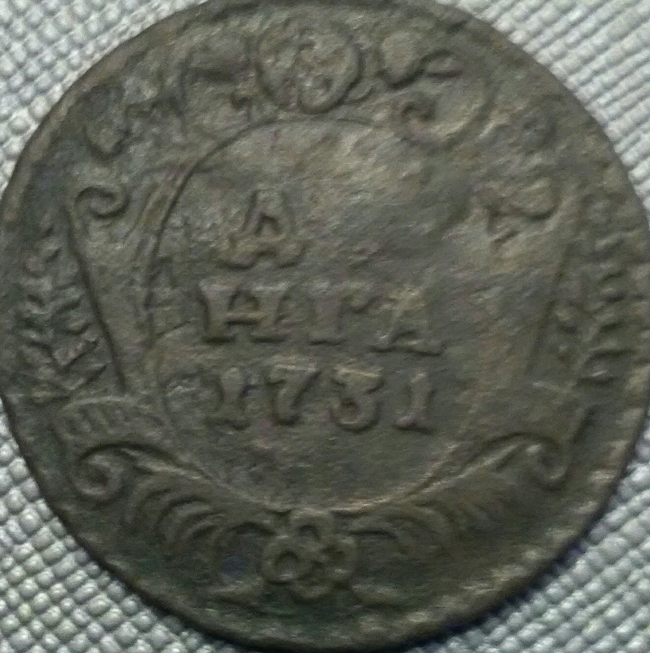 Добрый вечер! Попалась денга 1731 г. в таком состоянии. Подскажите по стоимости пожалуйста. Спасибо.