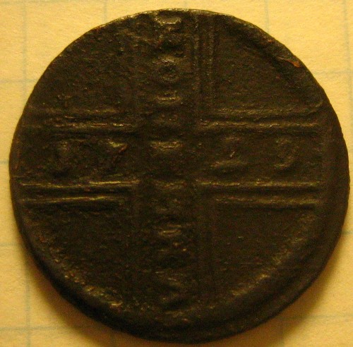 Разновидность с неправильным рисунком передних ног коня https://numar.ru/coins/petr-ii/mednye/1-kop...1729/prices1968