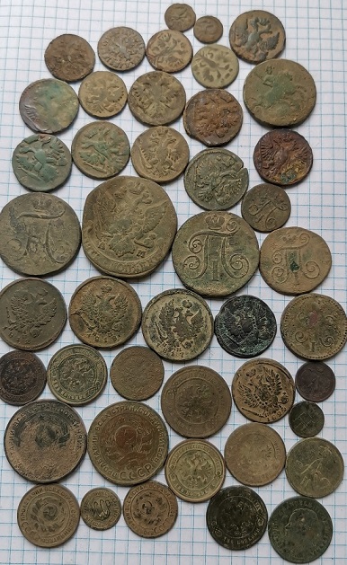 Доброго всем. Подскажите такой лот медяков будет интересен на ауке? Все монеты найдены мной, есть более менее не частые. Помыты только водой и то не все)) Собираю только серебро, медяки периодически разом продаю. Сколько может стоит такой лот? Более подробно по конкретной монете могу сфоткать чётче.