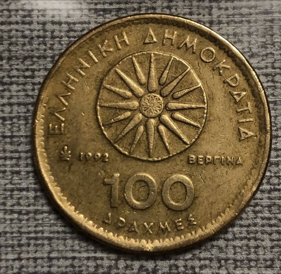 100 греческих драхмов с Александром Филипповичем на аверсе.