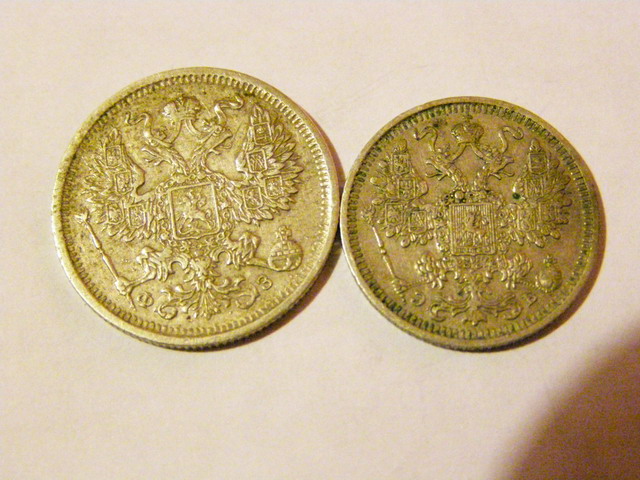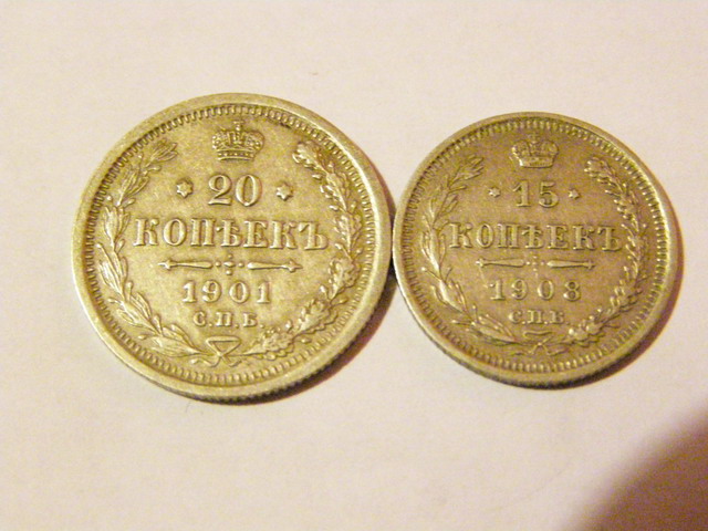 20 коп - 1911 - ЭБ 20 коп - 1909 - ЭБ 20 коп - 1905 - АР 20 коп - 1912 - ЭБ 15 коп - 1914 - ВС 15 коп - 1913 - ВС 10 коп - 1914 - ВС 10 коп - 1911 - ВС --------------------------- 2 новые монеты 20 коп - 1901 - ФЗ 15 коп - 1908 - ЭБ Сколько это может стоит вместе оцените? судя по вашим словам такие монеты у меня есть Viktor00 , aljusov4 скажите пожалуйста. Вложенные эскизы изображений |