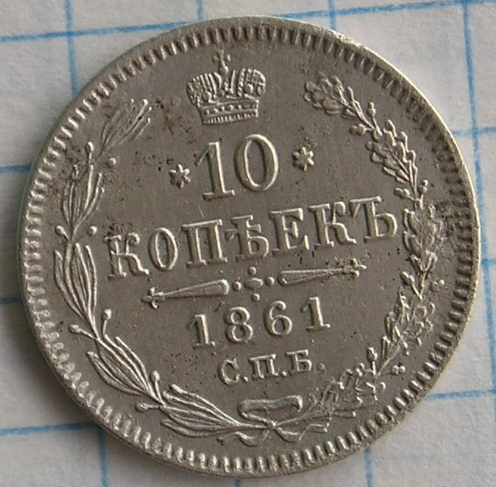 QUOTE(poroh @ Aug 13 2010, 08:16) 10 копеек 1861 гола - гурт пунктир... Такие 10 копеек реально сейчас продать рублей за 500, в былые времена уходили за 1000 и более рублей. |
