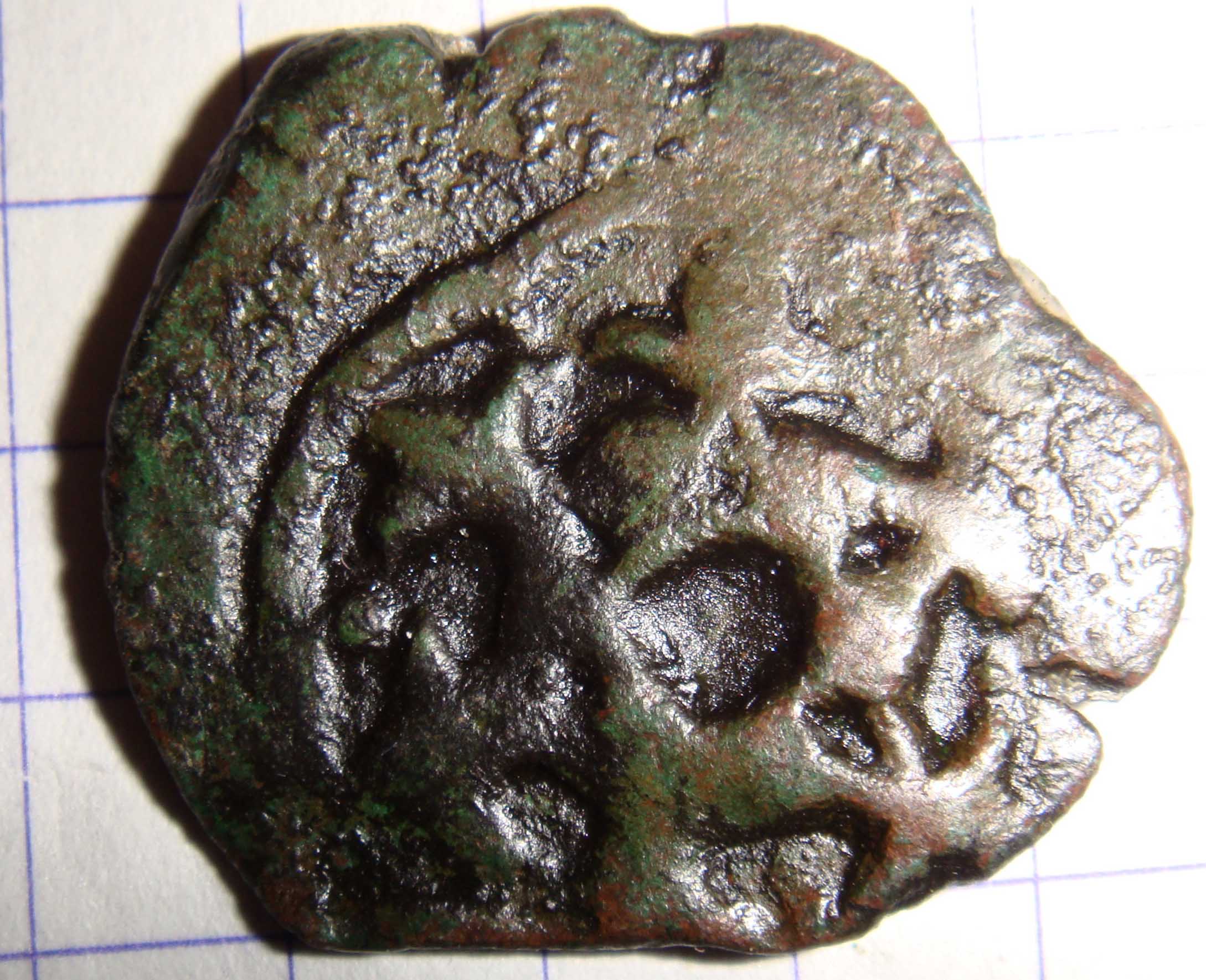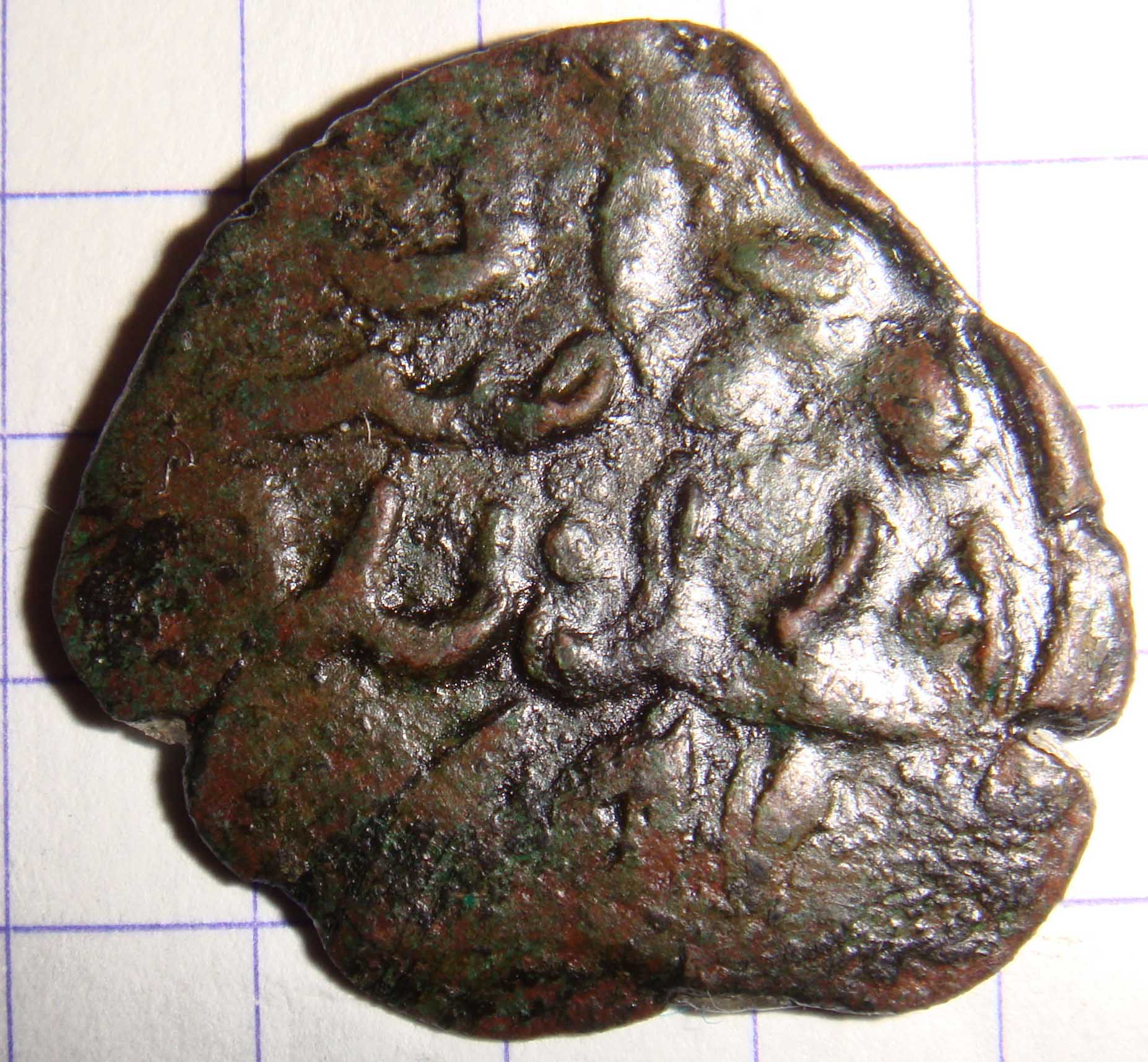 Пуло ордынское. Мелкая медная разменная монета. Интерес представляют некоторые из-за надписи на обратной стороне. В материальном плане - "пусть лежит дома".