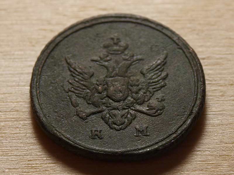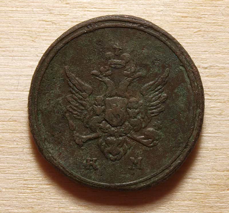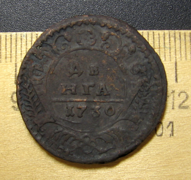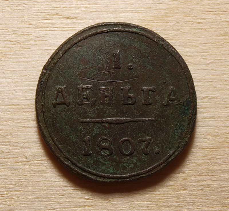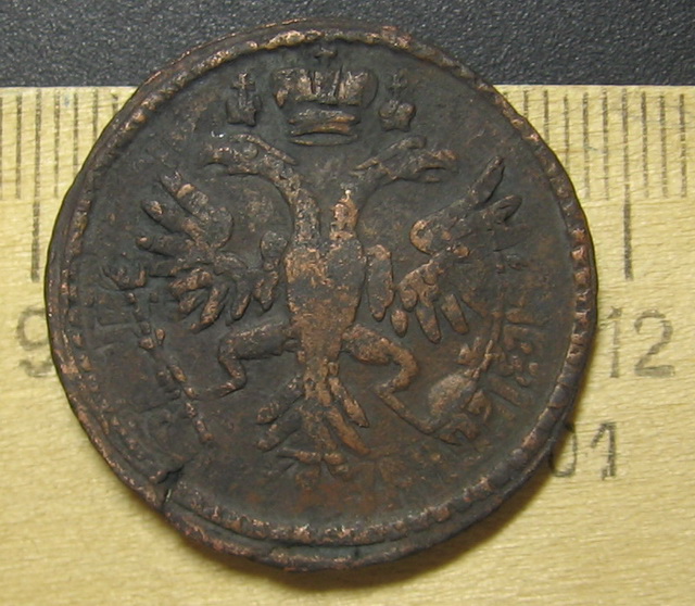 перечекан с копейки Петра 1 и одна черта, разделяющая надпись если почистить, по цене около 1000-1500, думаю. |