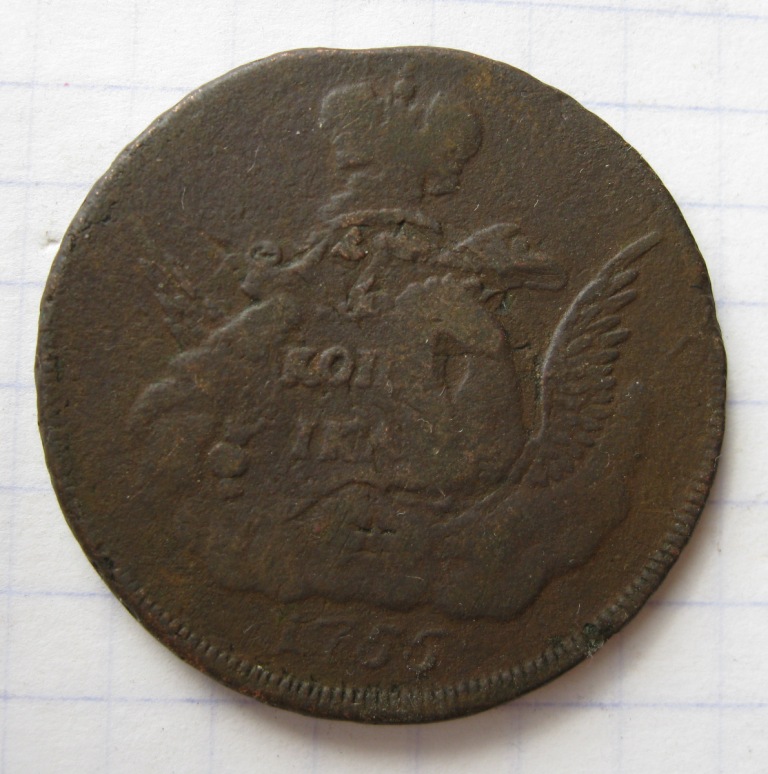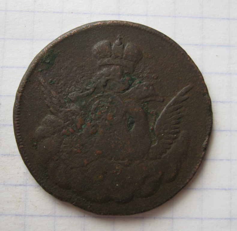 QUOTE(SanekAS @ Jun 25 2011, 14:26) Денга 1767 год. Подскажите по цене. Стоит ли чистить? Рублей 150-200. Сильно чистить не надо, подержите несколько часов в кефире. |