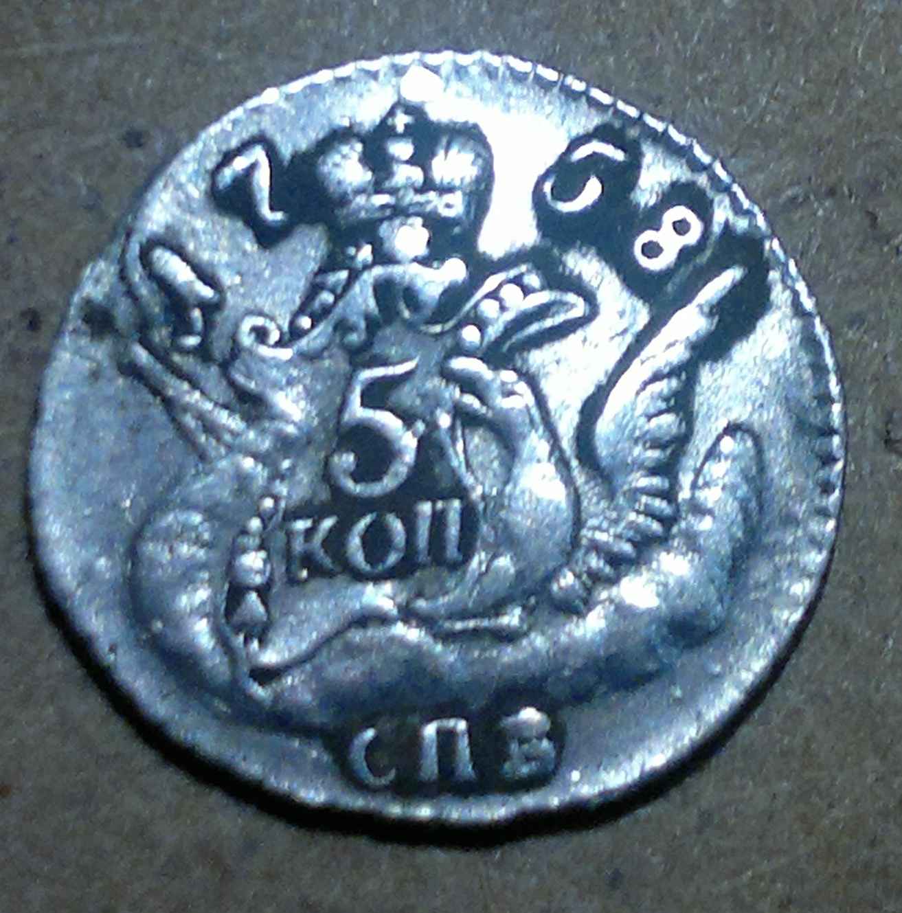 QUOTE(Forest31 @ Jul 2 2011, 12:24) Стоить может 1500-2000 рублей. Не понятно только, то ли перечекан, то ли двойной удар. Большое спасибо за помощь.Пятак похоже с двойным ударом,что как я понимаю скажется на цене не в лучшую сторону. |