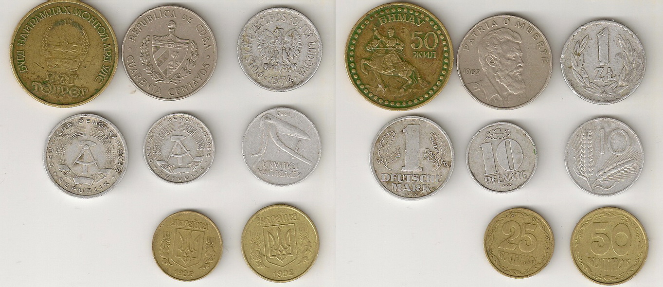 QUOTE(semgudvin @ Sep 3 2011, 22:31) добрый вечер! помогите оценить: Монгольские 50 жил Польская 1zt 1974 Куба 40 сентаво 1962 г. Италия: 10 лир 1952 Украинская 50,25 копеек 1992 Германия (ГДР) 10 pfennig 1963 Германия (ГДР) 1 deutsche mark 1956 50 рублей за все это бесценное сокровище , причем если повезет -------------------- Ищу работу модератором или в сфере продажи монет , МД и др