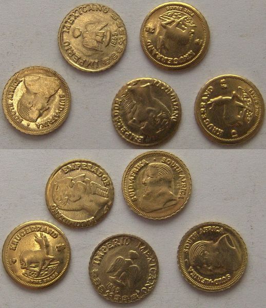 Лот из 5 иностранных монет Золото Низкопробное золото, мини-имитации золотых монет Krugerrand. Вес одной монеты 0,4-0,5 гр. = 1224 р. (если посмотрите еще проходы, там будут и другие подобные лоты и цены в этих же пределах). Сообщение отредактировано subedei: Oct 14 2011, 14:45 |