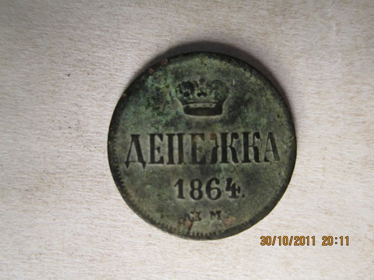Предположение что это копейка Екатерины второй 1769 ЕМ года, хотя есть сомнения и сколько в таком состоянии, почти какалик, может стоить? Состояние на фото: http://img-fotki.yandex.ru/get/4419/271944...8_15f25487_orig http://img-fotki.yandex.ru/get/5313/271944...c_fdd5494a_orig http://img-fotki.yandex.ru/get/5817/271944...9_d6c51109_orig П.С. Размер чуть больше 2 рублей ходячки, вес 11,2 гр. Не нашёл такую монету в каталоге или каталог не тот или монета??? Сообщение отредактировано Евлампий: Oct 29 2011, 23:22 -------------------- "Не желай ни кому того, чего себе не желаешь" или "Как аукнется, так и откликнется"