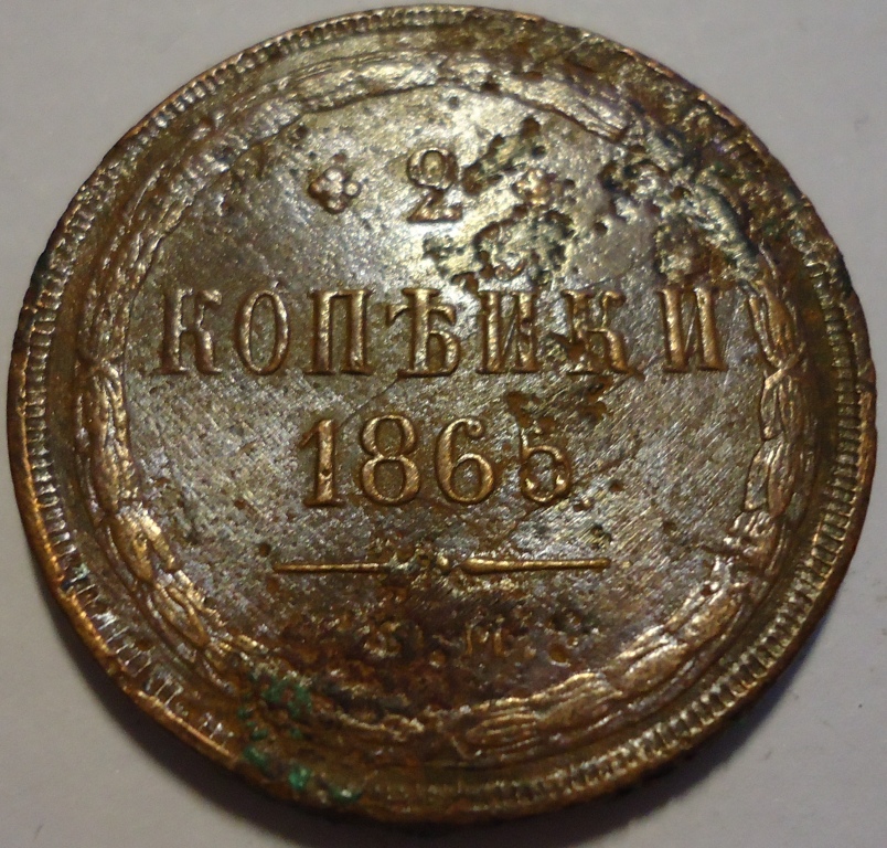 Прошу знатоков оценить данную монету 2 копейки 1865 года.