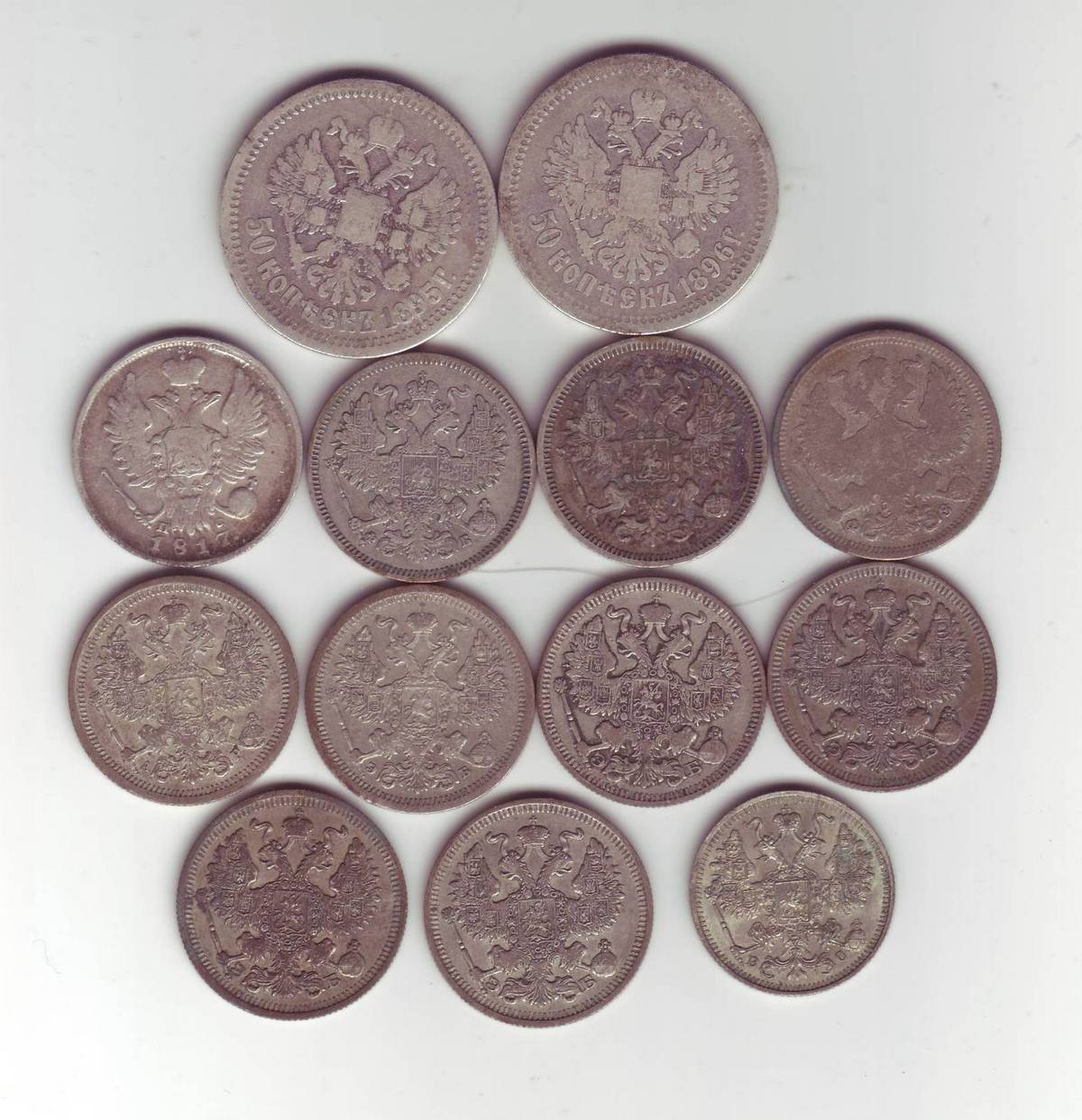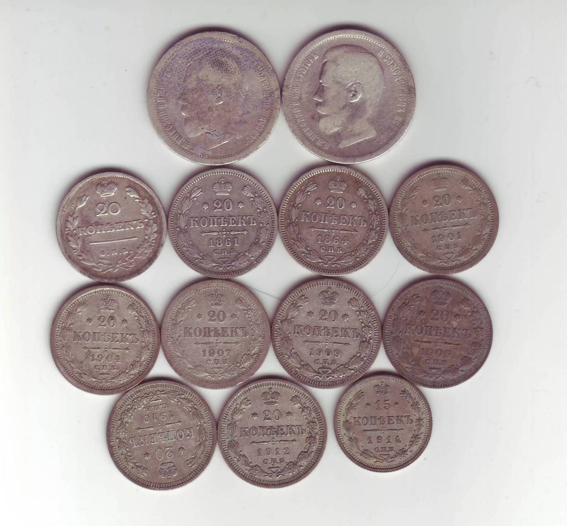 Сегодня поднял кошелек. На полтиннике даже следы материи остались. Монеты только помыты водой. Сканированы на 400. Интересует цена всего набора. Посоветуйте как лучше продастся-поштучно или все оптом ?