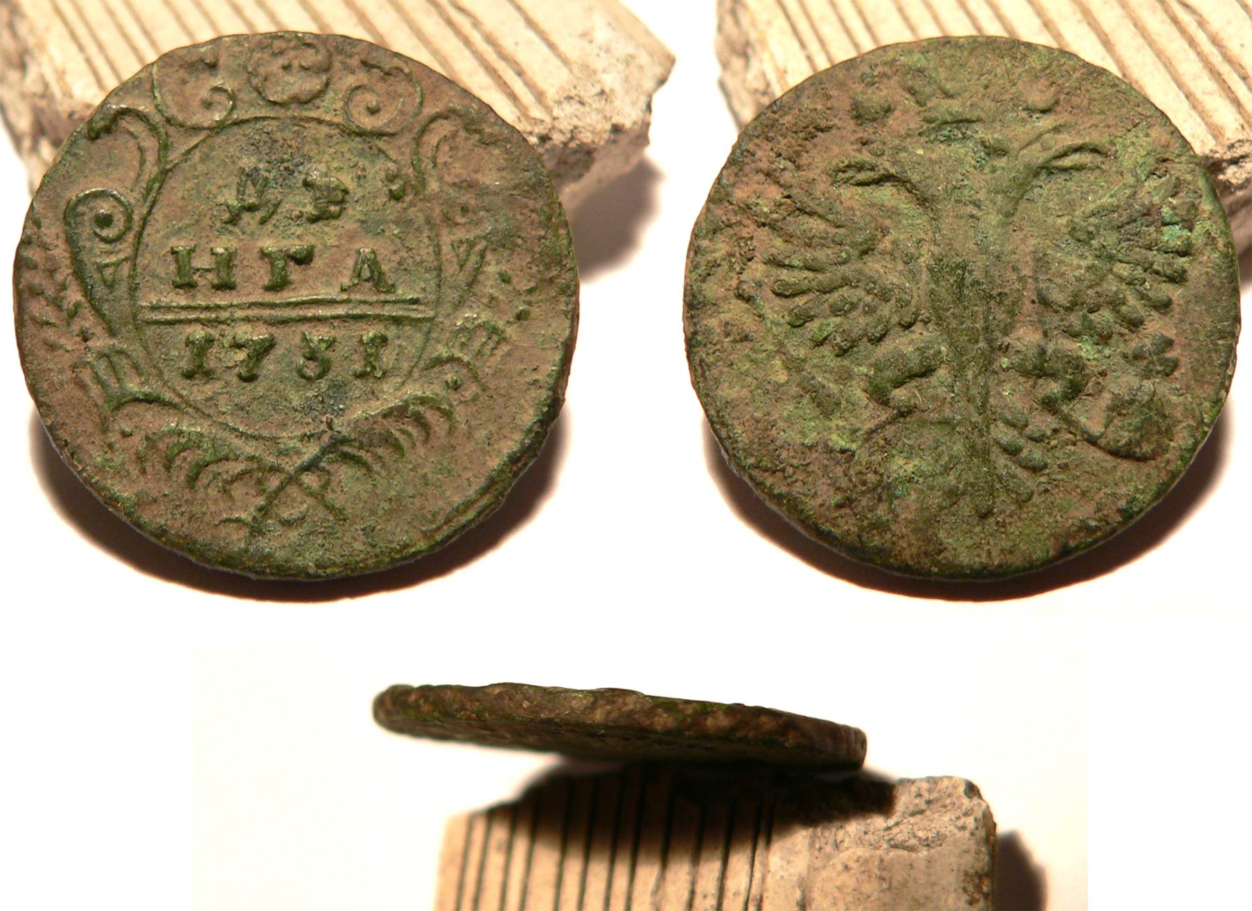 Добрый день. Подскажите пожалуйста приблизительную цену в этом состоянии. Деньга 1731 год. Монета с браком чеканки: смещение аверса и реверса относительно центра монеты на 15-20%