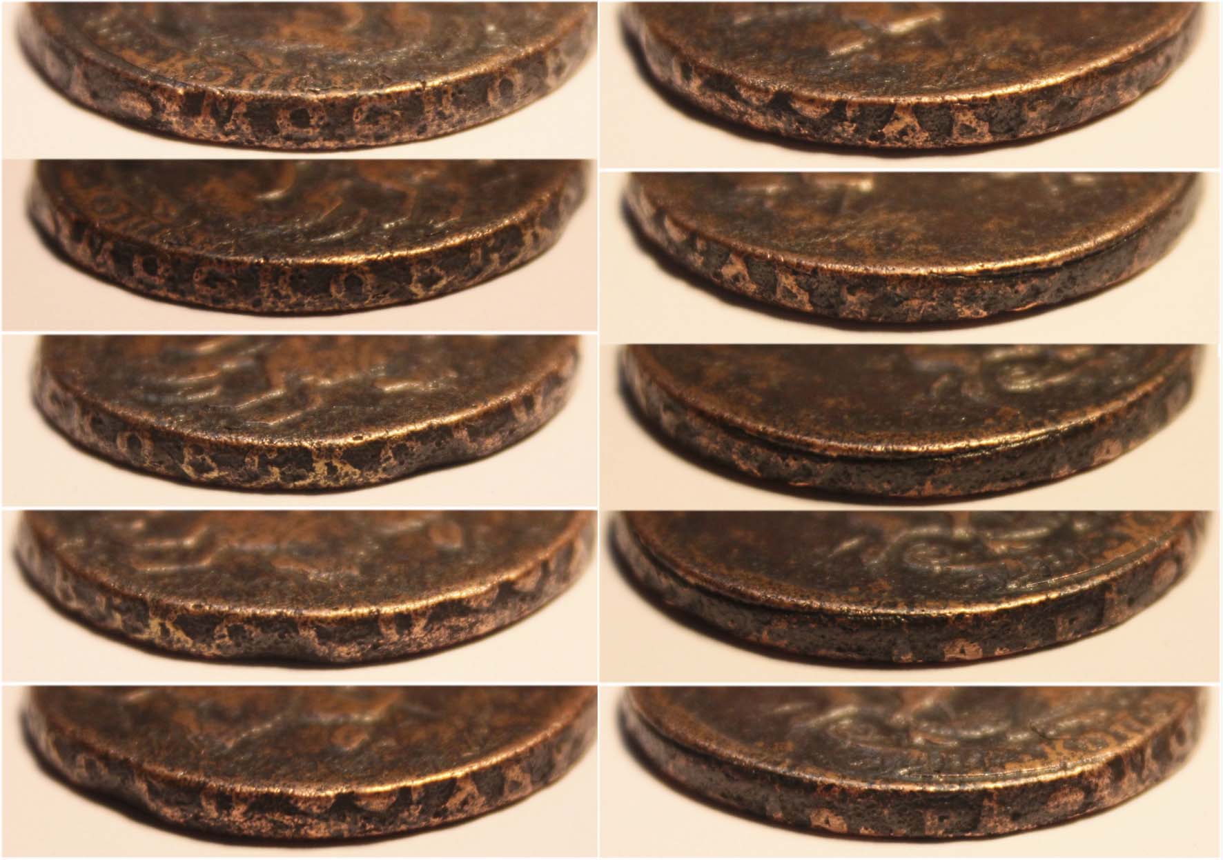 Гривенник ё774 под углом к свету дайте,пожалуйста !