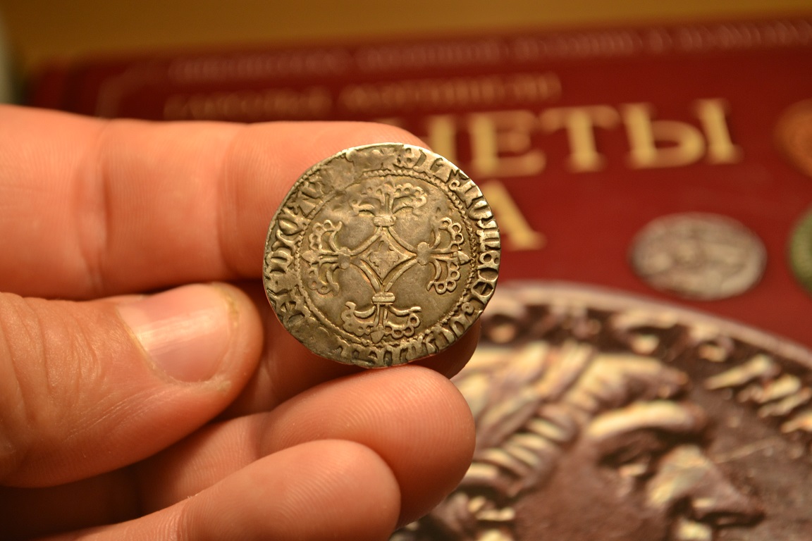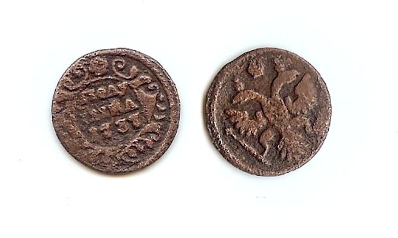 Доброго времени суток. Оцените пожалуйста монету полушка 1740 г. розетка гвоздика, гурт шнур, со стороны орла имеется вдавленная розетка