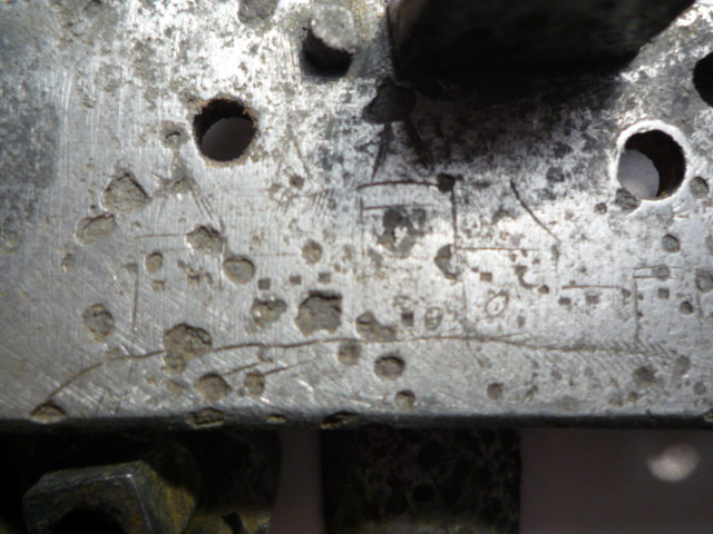 Выполнена- тонким штихелем. То, что обвёл красным(мелкие блестящие риски)- это остатки от алмазного надфиля(которым разравнивал восстановленный слой ржи). Повторюсь- именно алмазного надфиля. Алмазный надфиль наверное все видели? А теперь давайте представим какие мизерные риски от оставляет и сравним, насколько тонка сама гравировка? Далее- синим, обведена место(вокруг винта), где я надфилем не проходил(форма квадратика). Это место даёт представление о восстановившимся слое и что происходит при разравнивании. А главное- вещи имеет цвет, при своей реальной жизни, как появилась на свет. Именно восстановление слоя, а не разглаживание. Этой гравировки, просто бы не было.. Вложенные эскизы изображений -------------------- ...Всем известно, что Шико, дурак...