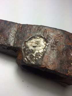 Большая часть очагов уже вскрыта. Дальше промывать в дис. воде – смыла нет, так как очаги будут разрастаться. Можно прокипятить со сменой дис. воды несколько раз, что бы удалить остатки щёлочи и часть оставшихся хлоридов. При кипячении эти места не зацветут. Далее просушить и ванна с ингибитор, спиртовой раствор танина в течении нескольких минут. Снова просушить и покрытие воскам, ванна. А далее надеяться, что большую часть хлоридов мы вымыли. На самом деле, процесс обессоливания должен быть замкнутым. По нормальному, даже замены жидкости происходит в инертной атмосфере. Да и определить начало или завершения цикла можно лишь с использованием оборудования, показывающего концентрацию солей (хлорида) в растворе. Так что, здесь нам приходится только гадать. Нужно ли это делать, промывать…. конечно. -------------------- Границы реставрации заканчиваются там, где начинается гипотеза