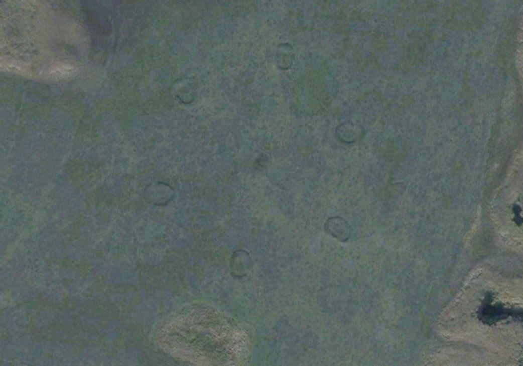 Размер оввалов 25*15м., расстояние между двумя метками - 70м., общий диаметр - 175 м. В центре тоже что-то просматривается. Направление на север - вертикально, не совпадает с геометрией 6-угольника. Что это может быть? Сообщение отредактировано A.Joy: Sep 6 2014, 21:47 Вложенные эскизы изображений -------------------- Горшок пустой — предмет простой, он никуда не денется.