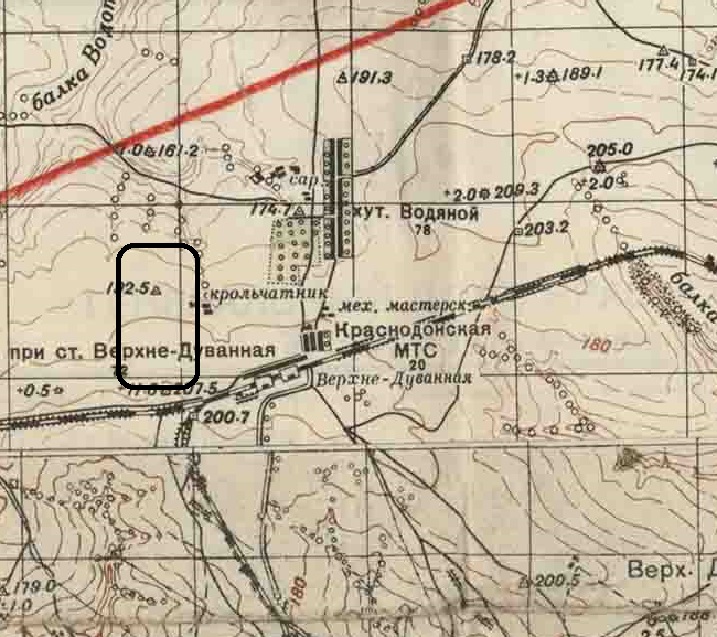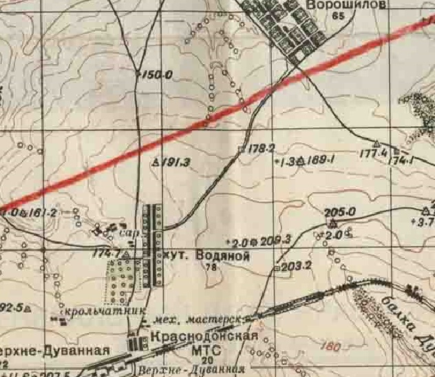 Здравствуйте уважаемые форумчане, попалась такая схема Знаю что возле Водяное находился аэродром, во время ВОВ использовался 46-й гвардейский Таманский дважды орденоносный полк ночных бомбардировщиков, летавший на самолетах По-2 . Тогда в нем было две эскадрильи по 10 самолетов и 112 человек личного состава. 27 мая полк прибыл к месту назначения — совхоз «Труд Горняка»(Водяное), после захвата немцами использовался немцами для переброски грузов под Сталинград. Подскажите пожалуйста, мог ли он обозначаться на карте так И как расшифровываются обозначения вокруг Водяное На карте 500 м. ркка его нет Заранее благодарен!