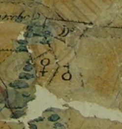 Господа, не поможете разобраться в обозначении на летописной карте? Моё предположение это обозначение "ямы"- "ама".Кружочек с жирной точкой по середине. И если это яма, то что за яма? и зачем обозначать ее на карте?