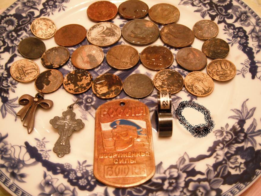 Собрался сегодня на коп съездить. Пока то да сё, пока жену на шопинг свозил, уже и обед. Впопыхах собрался, впопыхах же из гаража вылетел, малость недоглядел, чуть ворота не снёс нахрен. Малость оптику побил, щетку заломал...Не шибко серьезно, но неприятно. Осадочек. Аннушка моя маслица подлила-не ехал бы никуда, примета фиговая. Как бы чего похуже не было. Сам знаю, что примета хреновей не бывает, да еще видать цыганское заклятье-три крайних копа практически всухую. Но то ретивое, что внутри нас сидит, уже копытами бьет, а Дух Противоречия совсем другие мысли подсказывает...В общем таки поехал, туды их в качель. Приехал. Солнушко которое все утро грело, куда то делось, дождик зарядил...Всё один к одному. Но раз уж приехал, то приехал. Поприветствовал кого надо, и в бой. Ну бой это громко сказано. Пляжик не то что выбит-отполирован. Никаких иллюзий, но почемуто подумалось-один рыжий-и домой, нам чужого не надо! За два часа-3 рубля двумя монетами, да пяток пробок. Фольги и той практически нет. Засада. Мысли нехорошие в голову лезут. И тут как улыбнуло-глазам не поверил. Был конечно соблазн, еще поковыряться, но пацан сказал-пацан сделал. Поблагодарил, кого надо, собрался -и домой.