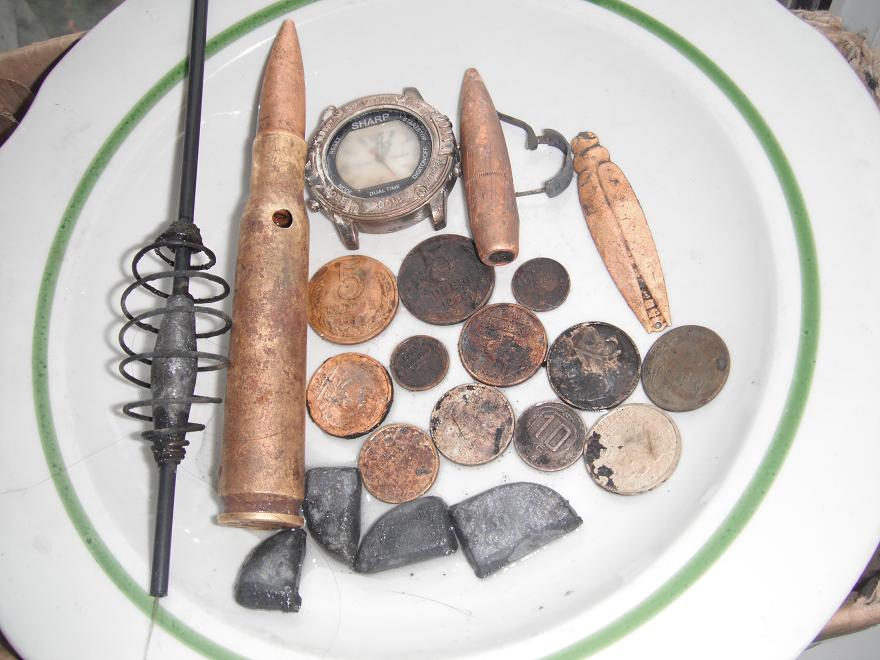 Всем доброго времени суток.Добрался таки до карьерчика,летом поднял жменьку полезного.Думал по осени вдумчиво пройдусь по правильному - фигвам опять жменька полезного .Видать еще прийдеться поработать над оным.За кадром ходячки 22 гривны в основном по 50 копеек,два раскладных ножа ,немного бижухи,килограммовое грузило - сразу торжественно подаренное рыбаку.Морозы хоть бы дали немного времени- больше 4 часов не покопаеш