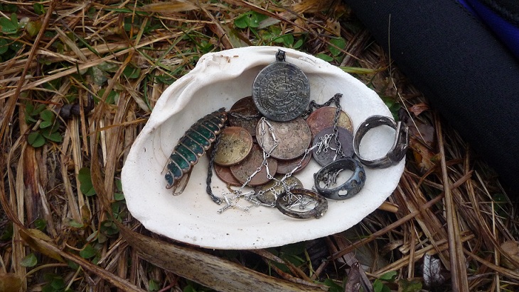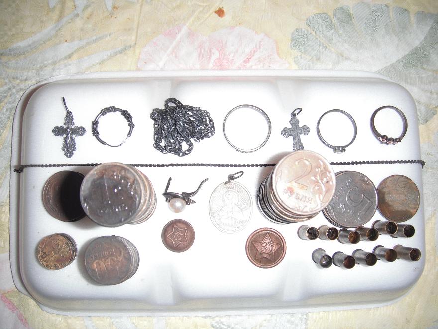 Баста. Закрыл сегодня пляжный сезон. Вода лед, ветер свищет, пляж на озере практически "космос", короче взмерз. В итоге - один (всего!) ключик от банки, пять Сталинских, четыре Брежневских монетки, рублей 20 современной ходячки (летом без ста не уходил) и наконец-то колечко правильное, опять обручалка.