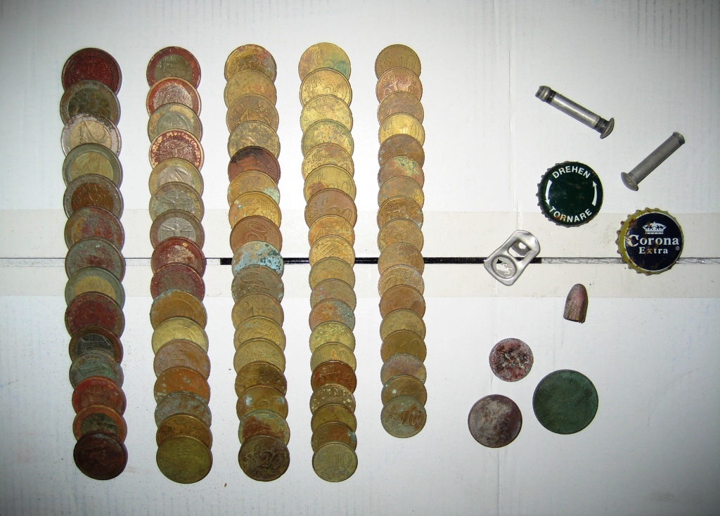 Субботу и воскресенье провел на море, с клюшкой и скупом, в общей сложности за 9 часов 88,5 евро. Много мелкой монеты 10-20 центов,задолбался копать.