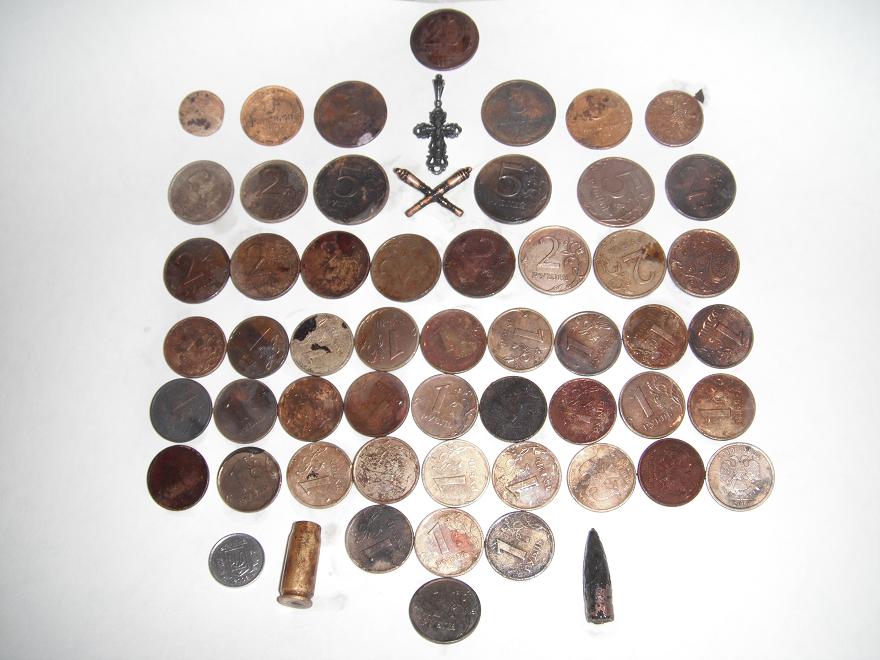 Монеты и полезный крестик,вот и весь улов.Чуть в Карбышева не превратился,а ноги как у Мересьева стали отморожены.100 грамм коньяка дома вернули к жизни!