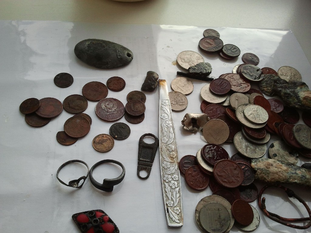 темперетура +5, вода в Балтике еще +12,копается и без перчаток комфортно.. Надел заброды ..и вперед.... радуга,легкий ветерок-и сплошной шмурдяк с аллюм центов и огрызков банок. набрел на кусок пляжа-видно подводными течениями и волнами выбрасило назад. 90 % -всего найдено на участке- 5 на 10 метров. итого 66 копеек СССР ,одна 20(50 лет Советской власти с Авророй), ну и "дедушка "подкинул 2 колечка Вложенные эскизы изображений -------------------- Большому кораблю море по колено