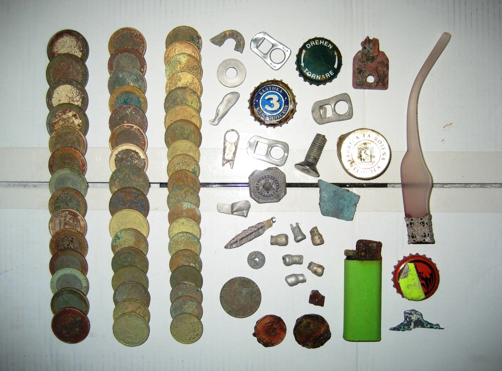 Под впечатлением от вчерашних космических фото Дика и Radiomans, сегодня, с тревогой в душе, решил специально поехать на битый пляж, крайний раз я его обследовал полтора месяца назад, также знаю, что после меня его проходили еще два конкурента. Первые пол часа почти ничего небыло, потом пошли дела помаленьку,в итоге за 3,5 часа наковырял 30 евро, плюс разный шмурдяк,шведская монетка, американские центы. За то время, что я не был на этом пляже, погода сделала свое дело, в одних местах штормом и ветром нанесло песку, в других наоборот - ветер его сдул, кое где размыло берег. Ходил медленно,прислушивался даже к самым слабым сигналам, разгребал слой песка и прозванивал вновь. В общем итог на фото, еще было выкопано 4 банки и несколько кусочков фольги. Сообщение отредактировано Bergedelweiss: Dec 19 2011, 23:18 Вложенные эскизы изображений -------------------- Omnia transeunt et id transibit quoque.