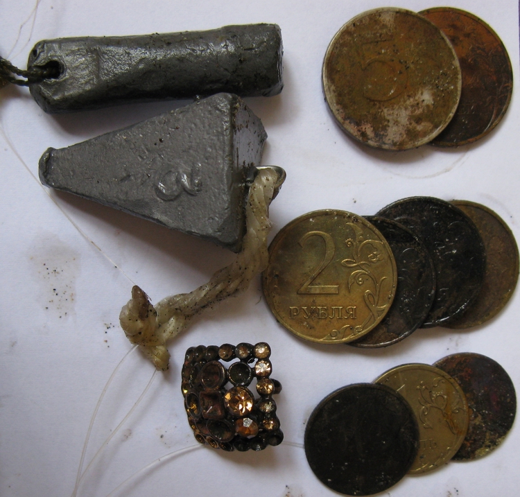 можно минут по 30 ходить без единого сигнанла, а потом найти грузило 2,5 часа - и только 1 бижуховая потеряшка. Скуп ставра пока что стоит в гараже, типа украшение - нет свежих потерях и работы ему нет. вот все что выловил сегодня. -------------------- Следую своим курсом!