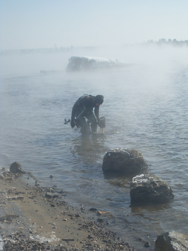 У нас тоже везде лед. В этом месте довольно интенсивное течение, по тому вода и не мерзнет.