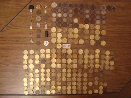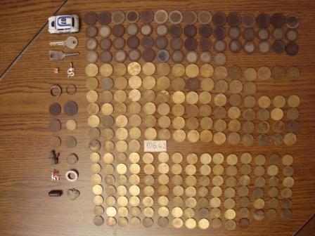 Нынче утром сьездил ,с килограмм грузил от закидушек,можно было бы еще копать,но надоело.Приятель-рыбак будет доволен.Пару монет и кольцо из неизвестного материала и полная сумка мусора начиная от "розочек"и кончая оплав.алюминия.Такое ощущение что копаешь в помойке.