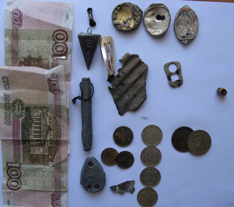 Поехал сегодня на новый пляжик, место вроде перспективное, но покопать не дали - пьянки закончились полпятого, затем шарились бомжи, а первые отдыхающие привалили в шесть. Вот всё что наковырял сходу за полтора часа, монетос от раних советов до современки, пара серебрух, жетон какого-то спецназовца и прочая хрень. Что радует - пробок в воде единицы.