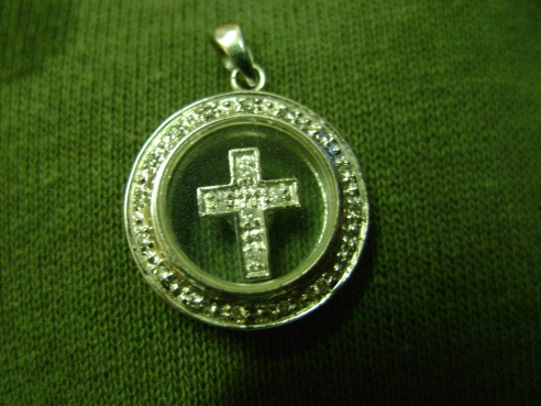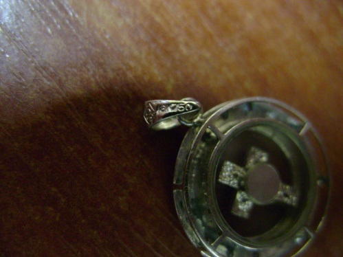 18 к 750 на душке кулончик.с крутящимся под стеклом крестиком.Что за белый метал не врублюсь и камушки очень подозрительно поблескивают.. |
