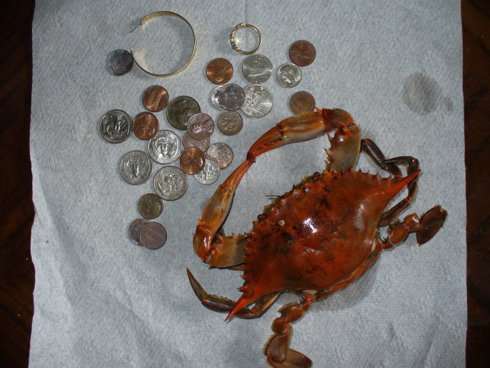 QUOTE(Гудрый Мудвин @ Jun 5 2011, 21:58) Синие крабы, колюче-кусачие и мы их едим. цена на краба зависит от сезона и размера магазине живых крабов продают порциями,в порции 12 штук,но можно взять и пол-порции, выходит примерно 0.80.-1.20 за штуку,если с икрой(внутри) то дороже сегодня какой то аномальный коп получился,сначала кирпич в скупе целиком очутился,потом краба здоровенного зацепил скупом,он как ноги свои разложил аж народ с берега вылупился,в диаметре сантиметров 50 если не больше накопал вот я металлолома,все больше стал замечать что бижуха стала попадаться и под серебро и под золото хрен отличишь на глаз ![]() тайное сообщество и мне,как и Зоркому тоже кольцо с волком прислало,видать переводят нас в ранг избраных копарей ![]() типа золотая серьга,блестит как настоящая,ни пятнышка ни окисла,даже гудела как рыжая,но увы ![]() а это гвоздь программы,попадались мне гнутые кольца,но шоб так,в первый раз,такое ощущение что молотком его лупили,сколько же лет оно бедное скиталось,и чаво только не натерпелось пока комне пришло в середине надпись Canada ![]() -------------------- Был рыбаком-преувиличивал,стал копарем-преуменьшаю!