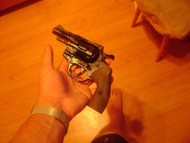 Сегодня в конусе побывал пистолет(с полным барабаном патронов) + ножны а после и сама сабля,рукоятка из меди в виде лошади.