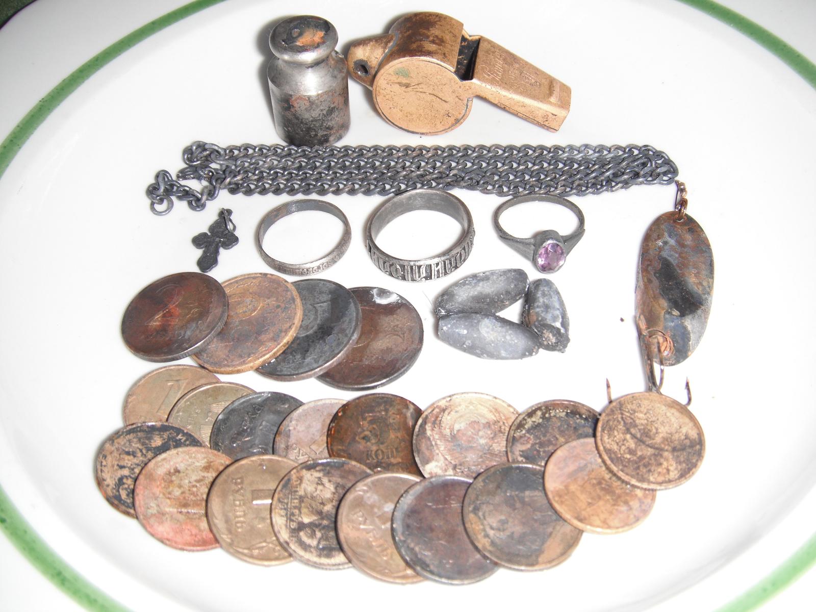 Вечерние находки + 2 опять за кадром(обручалки),улыбнул свисток из далекого детства-умели же делать,да и цветмет не жалели.