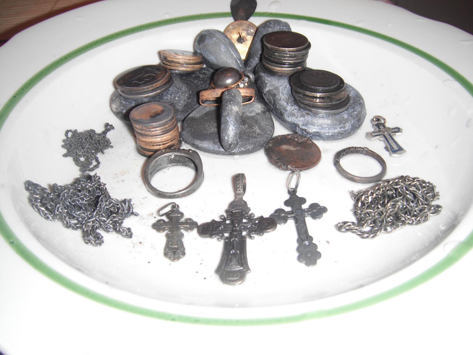 Улыбнули находки с одного из пляжей-кто то советские 15 копеек как кулон носил, кто то крест с поповский размером,а кто то из патронов крест сваял!
